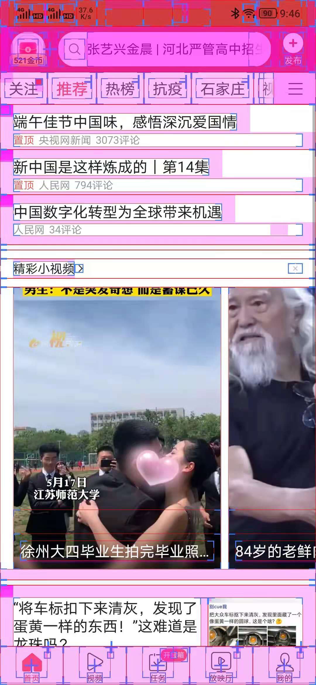 進入“開發者選項”--“顯示布局邊界”,開啟后就可以看到App的布局邊界了。